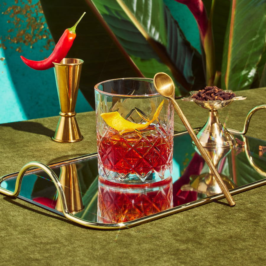 A contemporary riff on a cocktail classic. Moksha mingling with Campari and Vermouth, this spicy number is mixed with a pinch of cloves and finished with an orange twist. A fragrant spin on tradition, and an escape from the everyday.